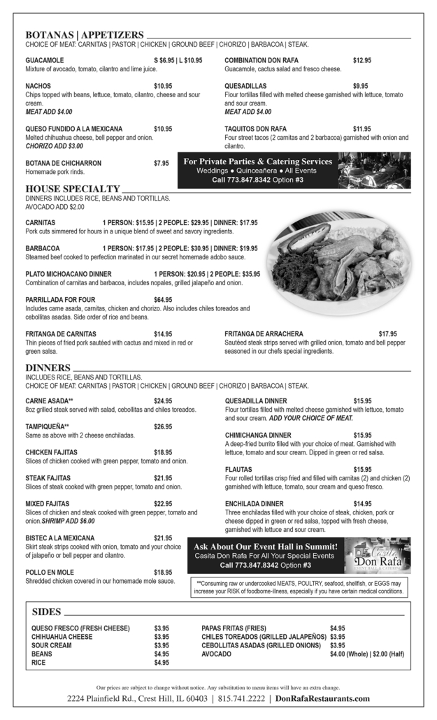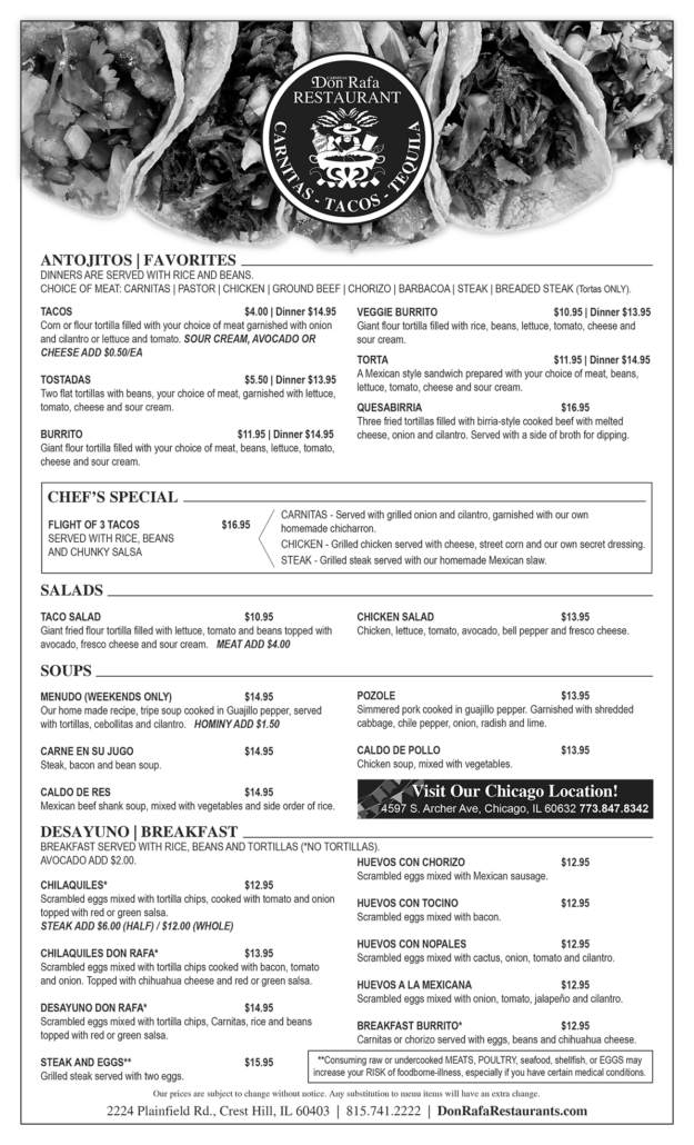 We’ve created delicious meal options full of traditional Mexican flavors passed down from our ancestors for our special customers.